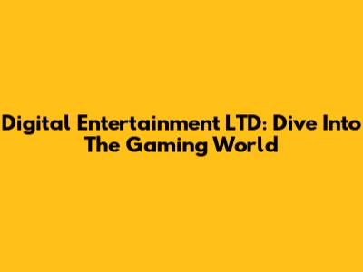 Digital Entertainment LTD: Dive Into The Gaming World