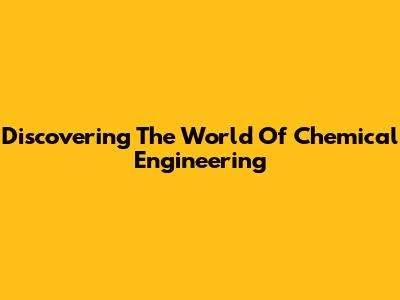 Discovering The World Of Chemical Engineering