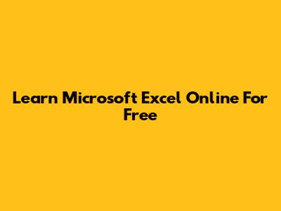 Learn Microsoft Excel Online For Free