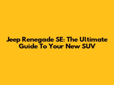 Jeep Renegade SE: The Ultimate Guide To Your New SUV