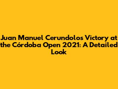 Hey guys! Let's dive deep into the thrilling Córdoba Open 2021, specifically focusing on Juan Manuel Cerundolo's incredible journey to victory. This tournament was a real rollercoaster of emotions, showcasing some seriously impressive tennis skills and proving to be a pivotal moment in Cerundolo's young career. We'll break down everything from his early matches to the nail-biting final, giving you the inside scoop on what made this win so special. Get ready for a tennis adventure! It was an unforgettable tournament, featuring exciting matches, unexpected upsets, and the emergence of a new tennis star. The Córdoba Open 2021 wasn't just another tournament; it was a stage where dreams were realized, and champions were made. So, buckle up, and let's relive the magic of Cerundolo's triumphant run.