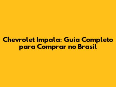 Chevrolet Impala no Brasil: Um Clássico em Busca de um Lar? E aí, pessoal! Se você, como eu, é apaixonado por carros clássicos e tem um carinho especial pelos modelos americanos, com certeza já sonhou em ter um Chevrolet Impala na garagem. Mas a questão que não quer calar é: como comprar um Chevrolet Impala no Brasil? É fácil? Difícil? Onde procurar? Neste guia completo, vamos desvendar todos os mistérios sobre a venda do Chevrolet Impala no Brasil, desde a história do carro, passando por dicas de onde encontrar e como avaliar, até os cuidados que você deve ter antes de fechar negócio. Então, prepare-se para embarcar nessa jornada e descobrir tudo o que você precisa saber para realizar o sonho de ter um Impala.