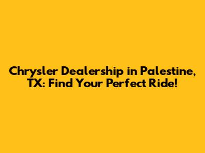 Hey guys! Are you on the hunt for a Chrysler in Palestine, Texas? You've landed in the right spot! Finding the perfect car can be a journey, but it doesn't have to be a headache. We're here to guide you through the world of Chrysler dealerships in Palestine, TX, making your search smooth and successful. Whether you're dreaming of a sleek Chrysler 300, a family-friendly Pacifica, or something in between, let's dive into what Palestine, TX has to offer.