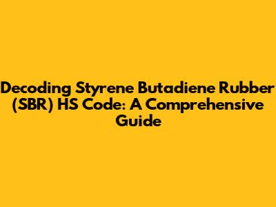 Decoding Styrene Butadiene Rubber (SBR) HS Code: A Comprehensive Guide