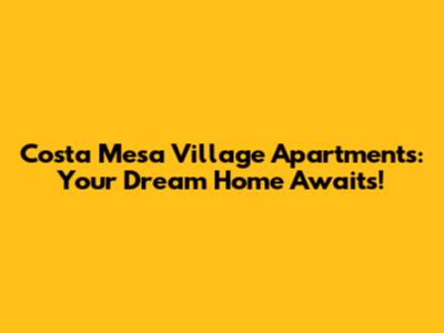 Costa Mesa Village Apartments: Your Dream Home Awaits!