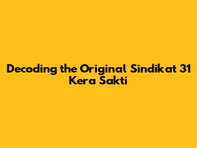 The Enduring Legacy: Why the Original Sindikat 31 Kera Sakti Still Matters