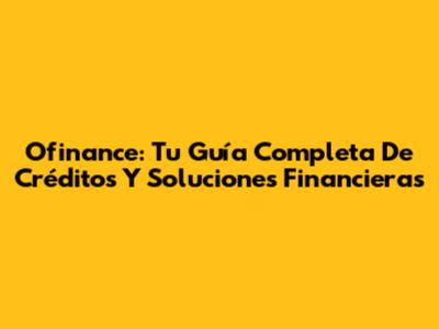 Ofinance: Tu Guía Completa De Créditos Y Soluciones Financieras