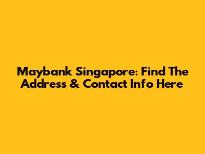 Maybank Singapore: Find The Address & Contact Info Here