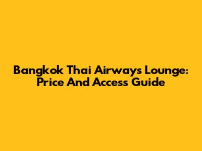 Bangkok Thai Airways Lounge: Price And Access Guide