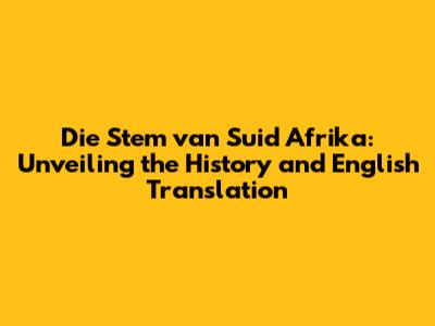 Hey guys! Ever wondered about the story behind South Africa's national anthem, "Die Stem van Suid Afrika"? It's a tune with a powerful history, deeply intertwined with the nation's past. Let's dive into its origins, evolution, and of course, the English translation so we can all appreciate its significance. Understanding the nuances of Die Stem is essential for grasping South Africa’s complex journey, and its eventual unification. It’s a story of struggle, resilience, and ultimately, hope. So buckle up, and let’s explore this fascinating piece of South African heritage together.