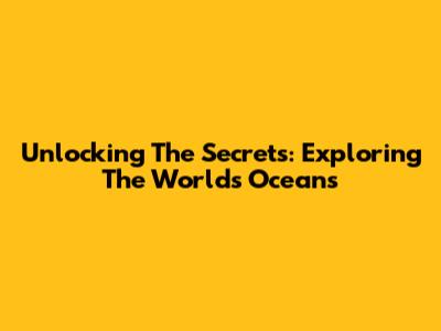 Unlocking The Secrets: Exploring The World's Oceans