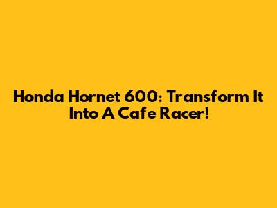 Honda Hornet 600: Transform It Into A Cafe Racer!
