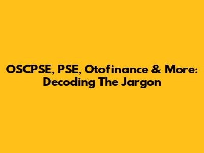 OSCPSE, PSE, Otofinance & More: Decoding The Jargon