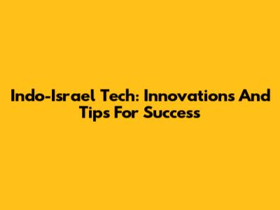 Indo-Israel Tech: Innovations And Tips For Success