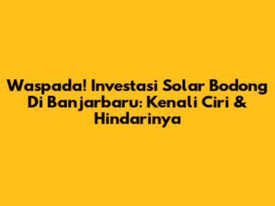 Waspada! Investasi Solar Bodong Di Banjarbaru: Kenali Ciri & Hindarinya
