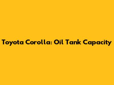 Toyota Corolla: Oil Tank Capacity