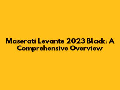 Maserati Levante 2023 Black: A Comprehensive Overview