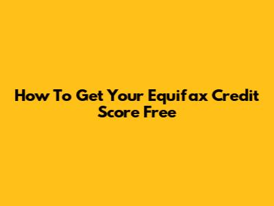 How To Get Your Equifax Credit Score Free