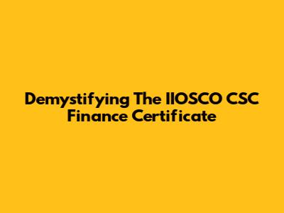 Demystifying The IIOSCO CSC Finance Certificate