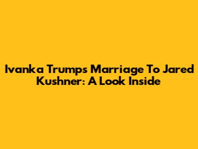 Ivanka Trump's Marriage To Jared Kushner: A Look Inside