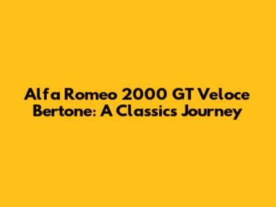 Alfa Romeo 2000 GT Veloce Bertone: A Classic's Journey