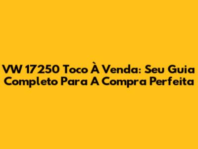 VW 17250 Toco À Venda: Seu Guia Completo Para A Compra Perfeita
