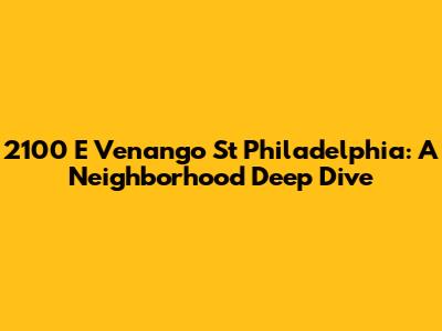 2100 E Venango St Philadelphia: A Neighborhood Deep Dive