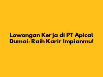 Lowongan Kerja PT Apical Dumai: Peluang Karir Terbaru!