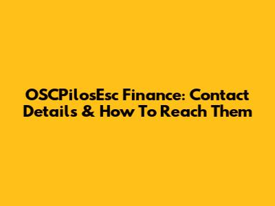 OSCPilosEsc Finance: Contact Details & How To Reach Them