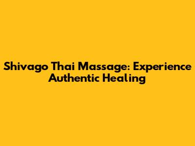Shivago Thai Massage: Experience Authentic Healing