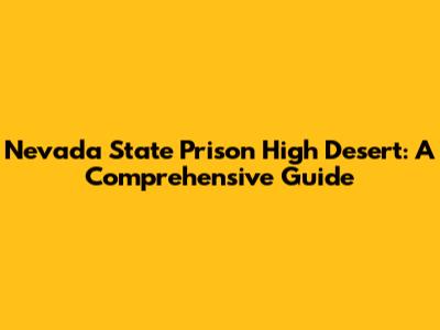 Nevada State Prison High Desert: A Comprehensive Guide