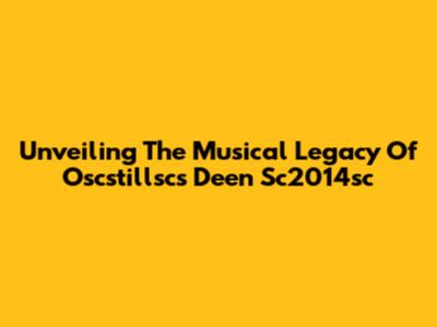 Unveiling The Musical Legacy Of Oscstillsc's Deen Sc2014sc