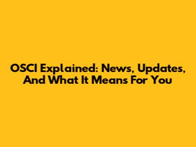 OSCI Explained: News, Updates, And What It Means For You