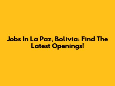 Jobs In La Paz, Bolivia: Find The Latest Openings!