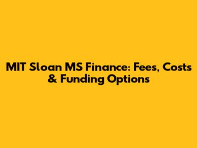 MIT Sloan MS Finance: Fees, Costs & Funding Options