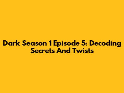 Dark Season 1 Episode 5: Decoding Secrets And Twists