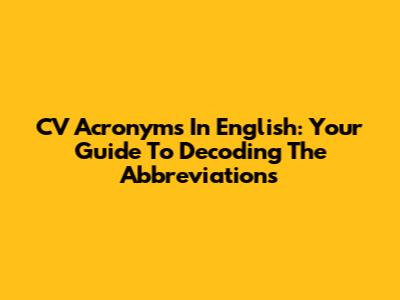 CV Acronyms In English: Your Guide To Decoding The Abbreviations