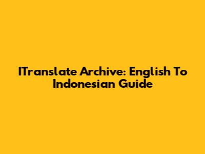 ITranslate Archive: English To Indonesian Guide
