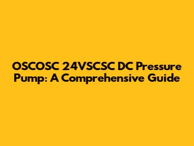 Understanding the OSCOSC 24VSCSC DC Pressure Pump