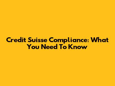 Credit Suisse Compliance: What You Need To Know
