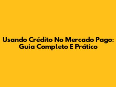 Usando Crédito No Mercado Pago: Guia Completo E Prático
