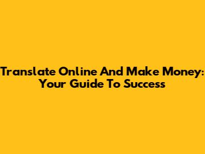 Translate Online And Make Money: Your Guide To Success