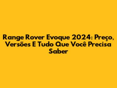 Range Rover Evoque 2024: Preço, Versões E Tudo Que Você Precisa Saber