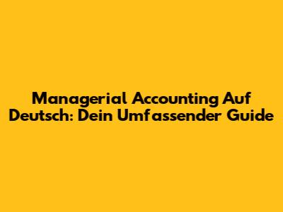 Managerial Accounting Auf Deutsch: Dein Umfassender Guide