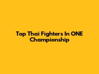 Top Thai Fighters In ONE Championship