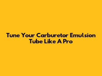 Tune Your Carburetor Emulsion Tube Like A Pro