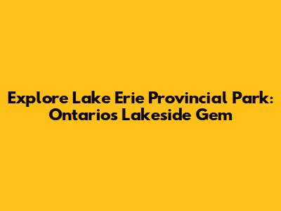 Explore Lake Erie Provincial Park: Ontario's Lakeside Gem