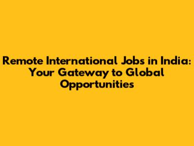 The rise of remote international jobs in India is not just a trend; it's a fundamental shift in the way we work. By embracing this change and equipping themselves with the right skills and knowledge, Indian professionals can unlock a world of opportunities and achieve their career aspirations on a global scale.