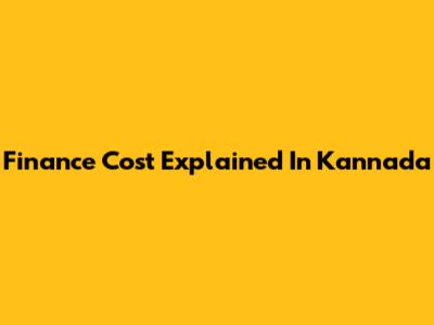 Finance Cost Explained In Kannada