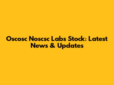Oscosc Noscsc Labs Stock: Latest News & Updates